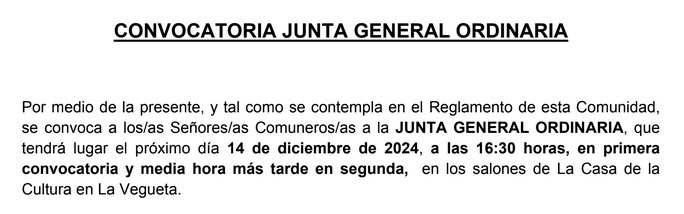 Junta General Ordinaria de la Comunidad Leer más...